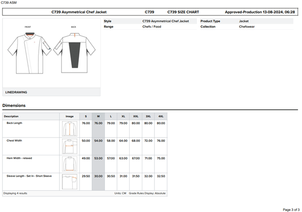 Tabel detaliat disponibil în galeria produsului (dimensiuni în cm pentru piept, lungime spate, lungime mânecă etc.).