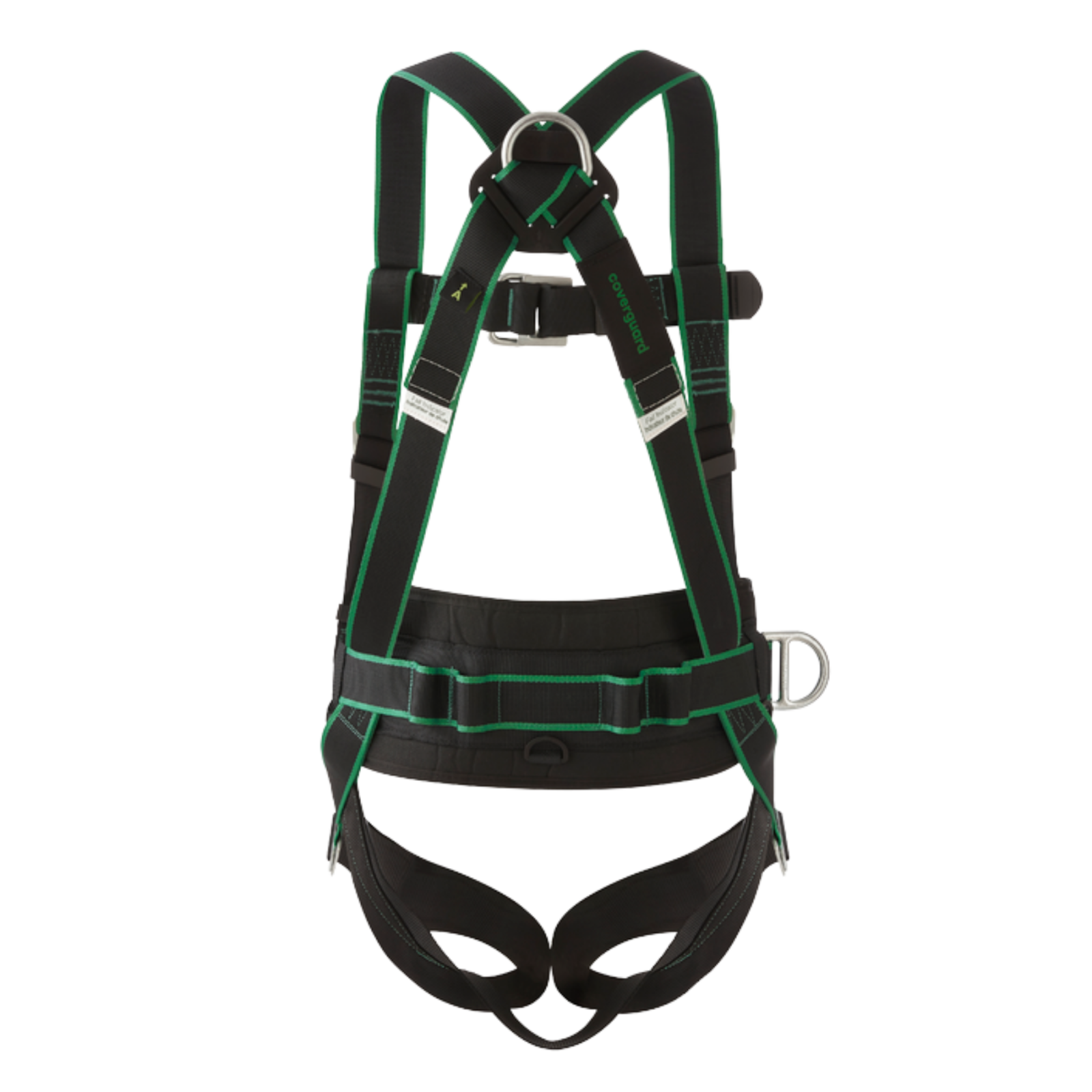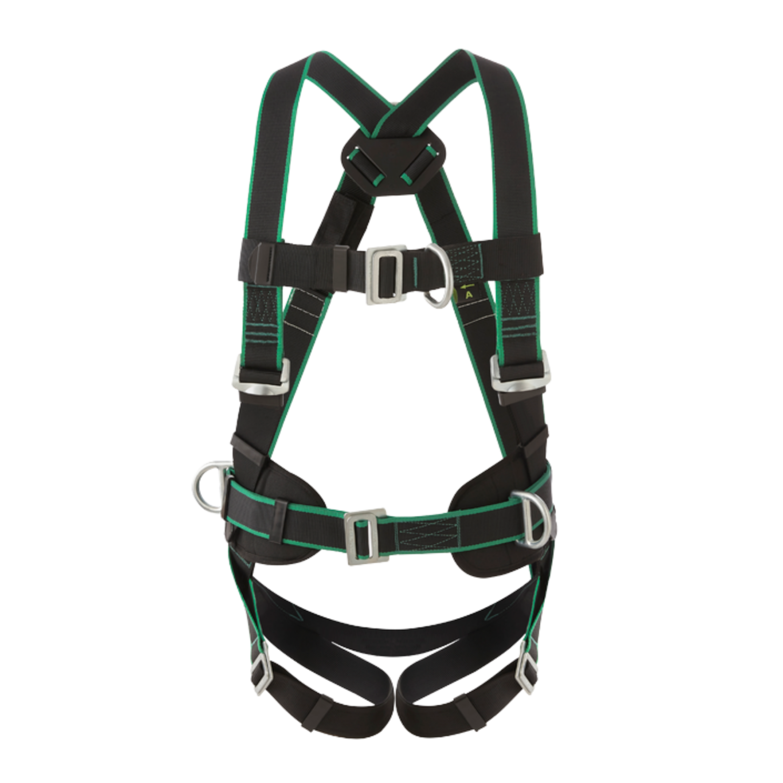 Centura este echipată cu 4 puncte de prindere: două inele D pentru anticădere (dorsal și sternal) și două laterale pentru poziționare. Include centură de poziționare căptușită pentru confort crescut, precum și 4 bucle pentru scule. Eticheta cu jurnal de inspecții este protejată cu Velcro, iar indicatorii de cădere sunt integrați pentru siguranță sporită.