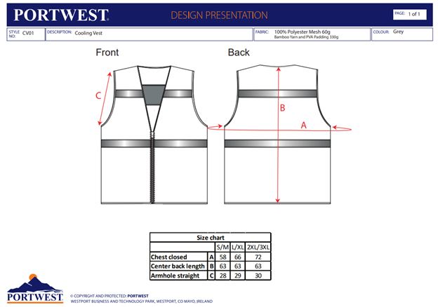 PORTWEST CV01, Vesta de răcire, din poliester tip plasă 60 g/mp, umplutură fire bambus și PVA 330 g/mp