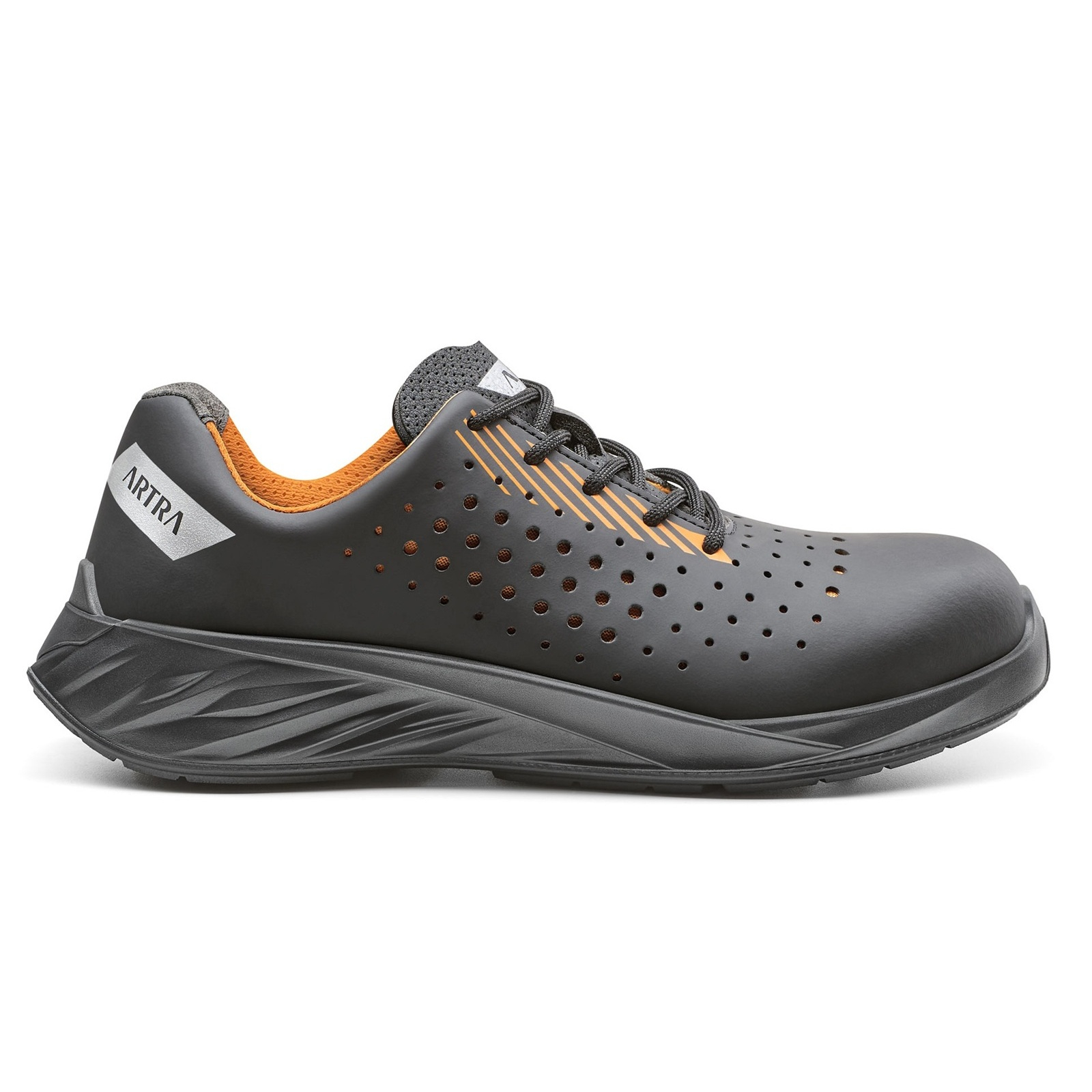 ARYEL 320 Air S1PL FO SR, Pantofi de protecție din microfibră cu bombeu compozit, lamelă antiperforație, talpă PU 2D - încălțăminte profesională din colecția ARTRA DARKYUM 2025-2026. Concepuți pentru profesioniștii care au nevoie de bombeu compozit, lamelă antiperforație, 100% metal free, acești pantofi oferă un echilibru excelent între siguranță și confort pe toată durata zilei de lucru.