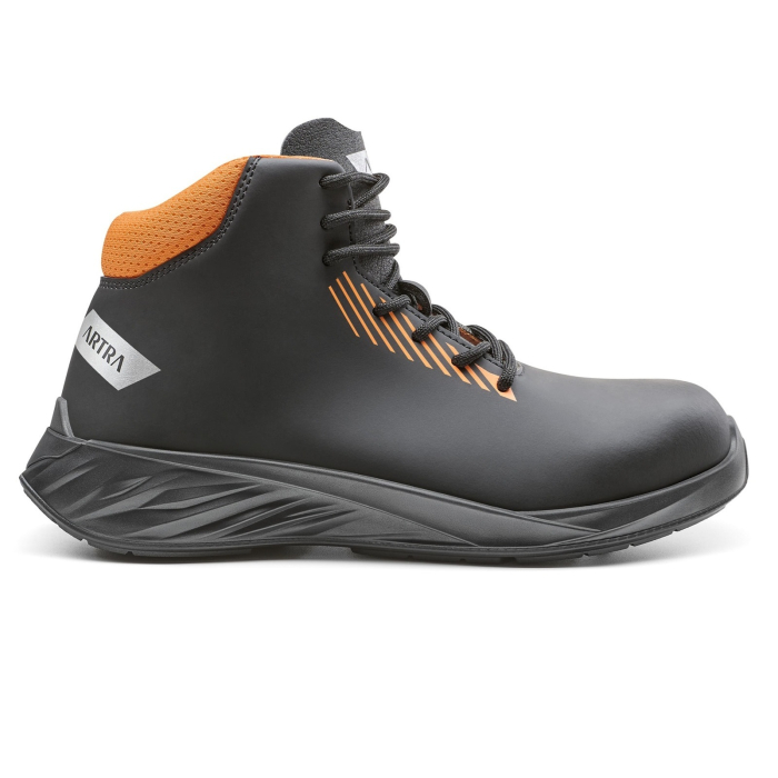 ARYON 340 S3L FO SR, Bocanci de protecție din microfibră cu bombeu compozit, lamelă antiperforație, fețe hidrofobizate, talpă PU 2D - încălțăminte profesională din colecția ARTRA DARKYUM 2025-2026. Concepuți pentru profesioniștii care au nevoie de bombeu compozit, lamelă antiperforație, fețe hidrofobizate, 100% metal free, acești bocanci oferă un echilibru excelent între siguranță și confort pe toată durata zilei de lucru.