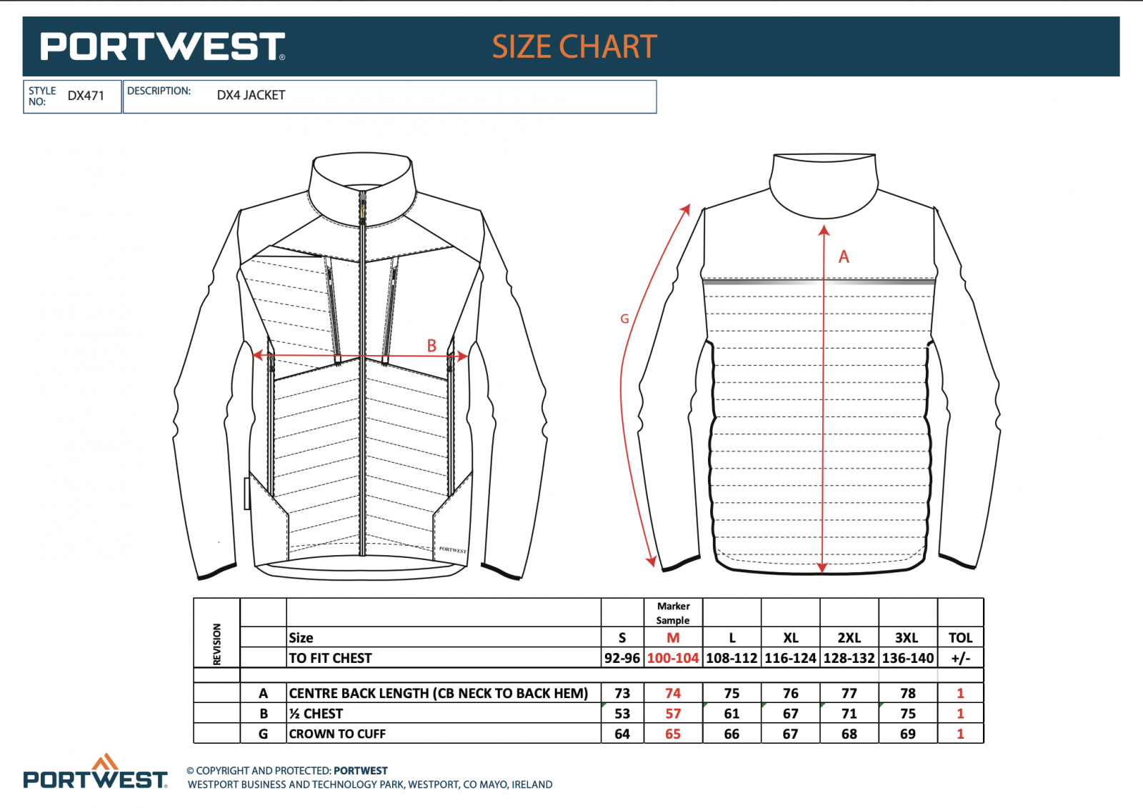 Disponibil în mărimi de la S la XXXL. Consultă tabelul de mărimi Portwest pentru alegerea corectă.