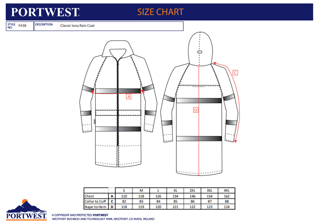 Disponibil în mărimi de la S la 4XL. Consultă tabelul Portwest de mărimi pentru alegerea corectă.