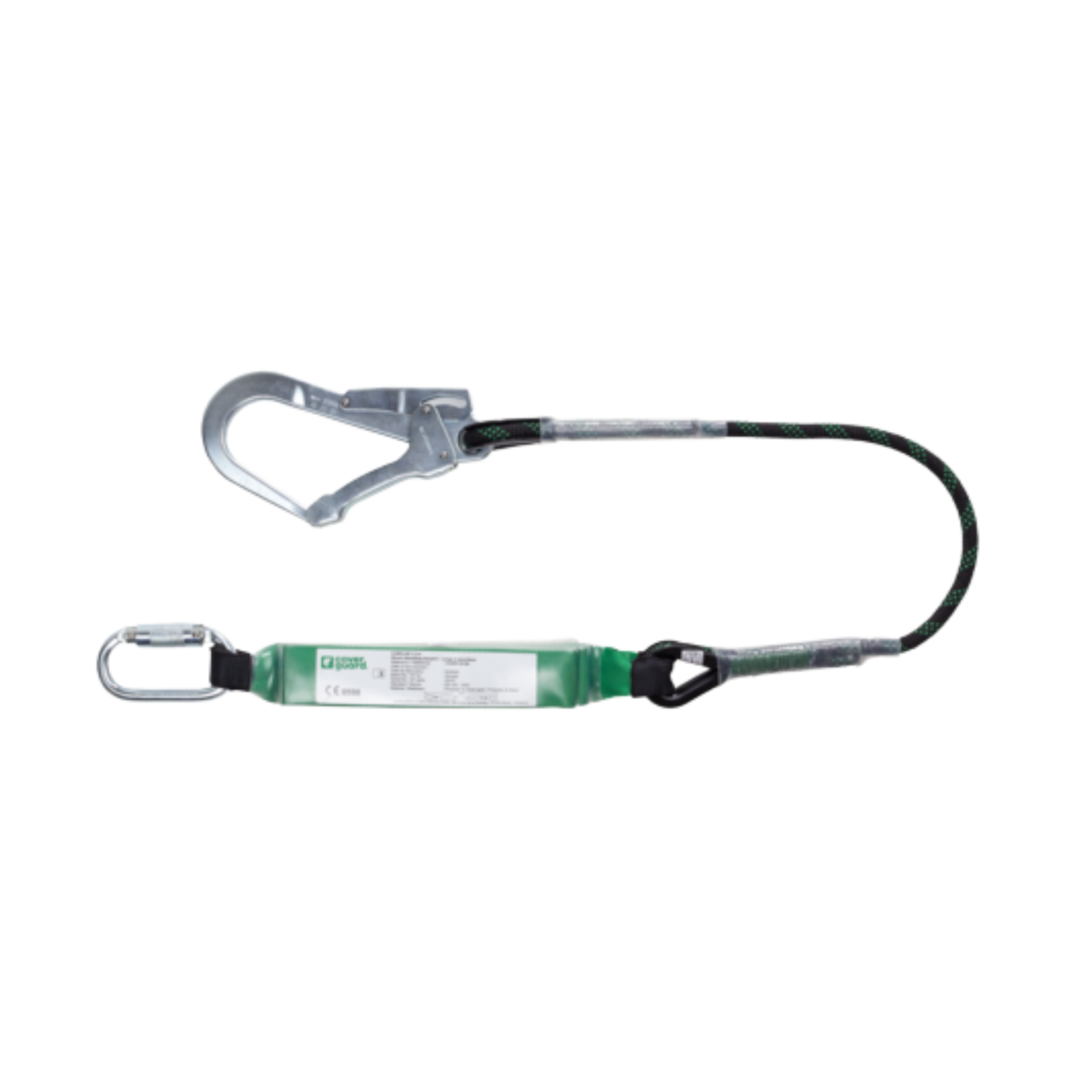 Produsul este prevăzut cu absorbitor de energie care limitează forța de impact sub 6 kN, o carabină automată din oțel la capătul absorbantului și un cârlig de schelă de 50 mm din oțel la celălalt capăt. Sistemul este protejat suplimentar prin mașon transparent din plastic, care acoperă cusăturile ochiurilor pentru o durabilitate sporită.