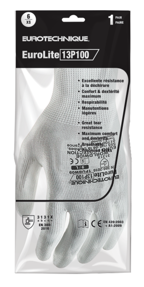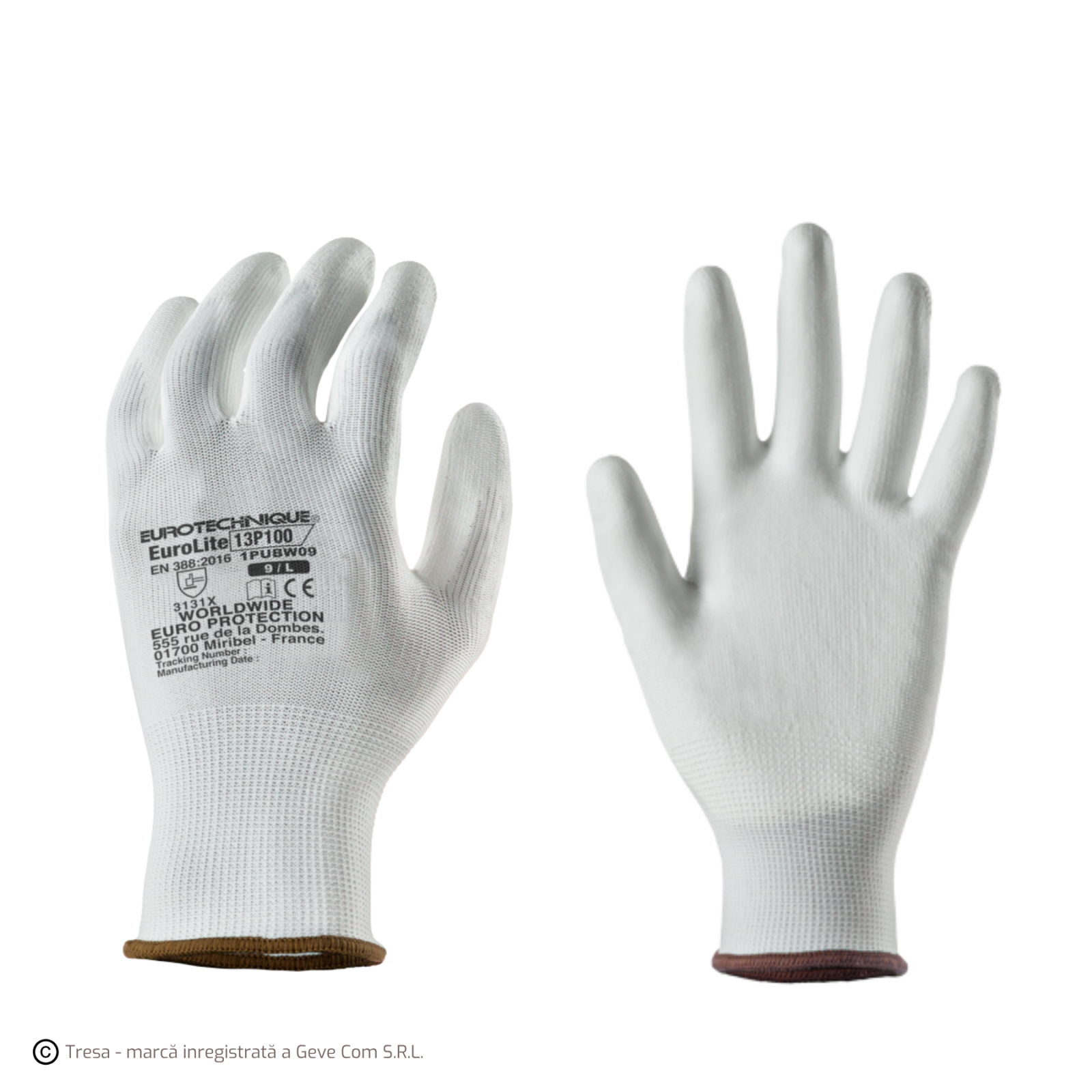 Mănușile de protecție EUROLITE 13P100 sunt concepute pentru activități ce necesită precizie și dexteritate în medii uscate. Datorită suportului din poliester tricotat fără cusături și acoperirii cu poliuretan neted pe palmă, aceste mănuși oferă o combinație ideală între confort, sensibilitate tactilă și rezistență mecanică moderată. Manșeta elastică asigură o fixare eficientă pe încheietură, contribuind la prevenirea pătrunderii particulelor.