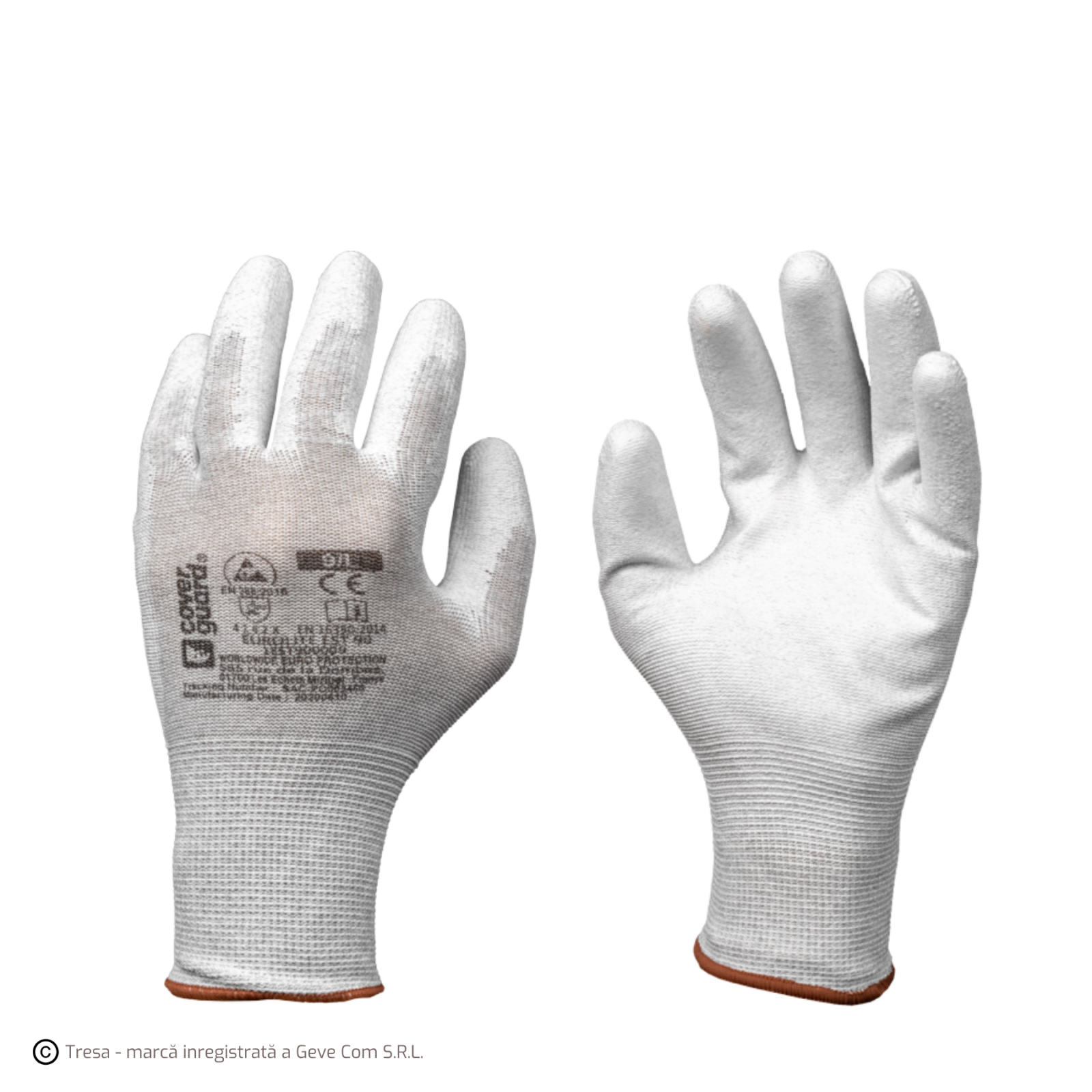 Coverguard COVERGUARD EUROLITE EST90, Mănuși de protecție antistatice (ESD) din poliester și fibră de carbon, imersate în poliuretan