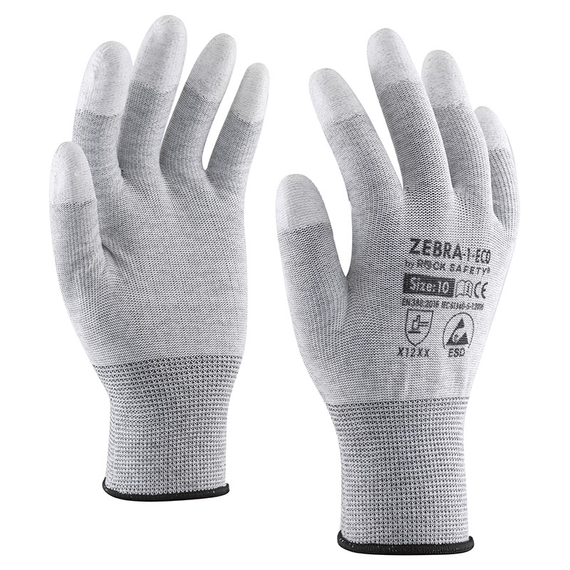 Mănușile ZEBRA-1-ECO sunt proiectate pentru protecția antistatică (ESD), fiind ideale pentru medii sensibile la descărcările electrostatice. Realizate din poliester cu fibră de carbon, aceste mănuși oferă protecție și confort excepționale. Vârfurile degetelor sunt acoperite cu PU (poliuretan), asigurând precizie și aderență în timpul lucrului, reprezentând o soluție economică și durabilă.