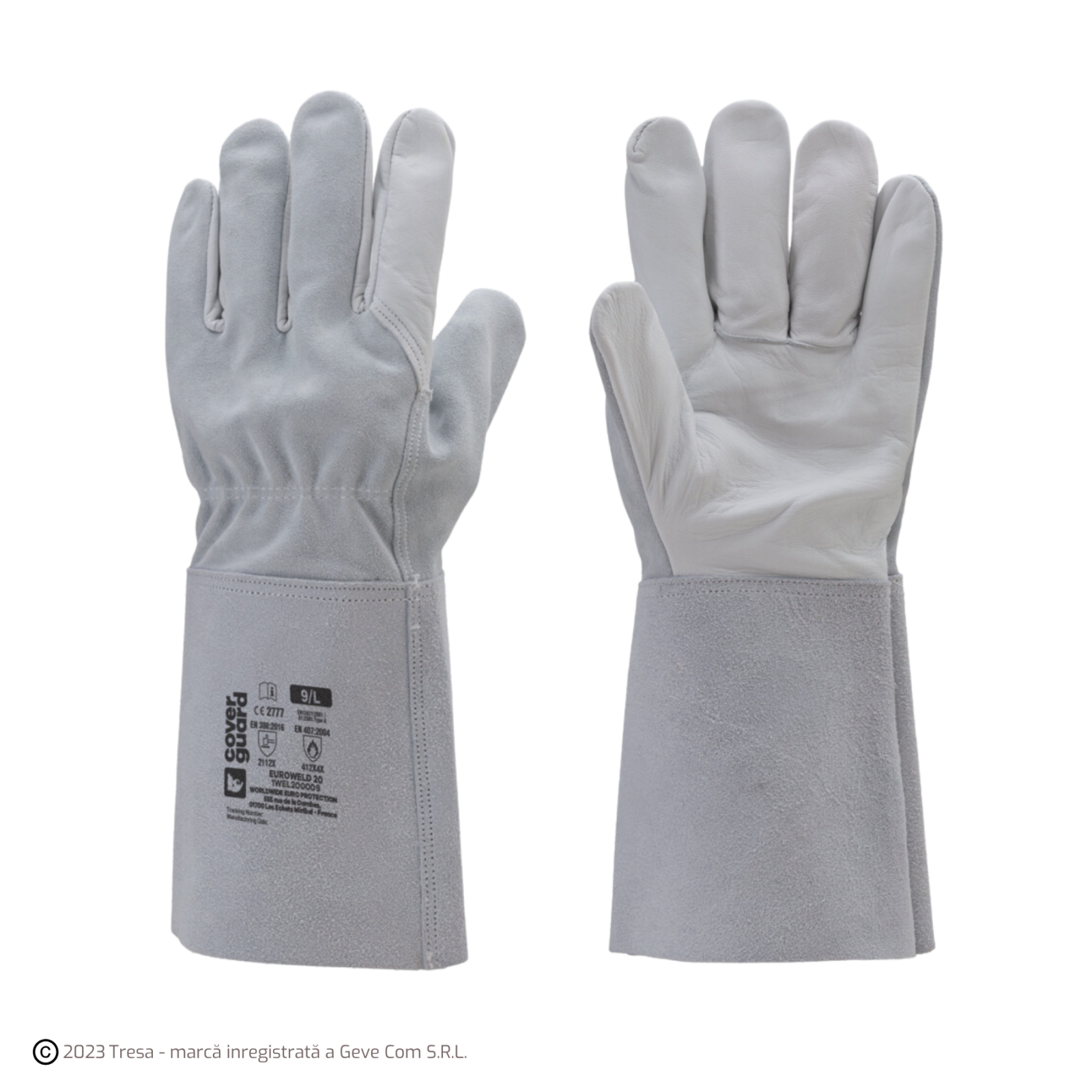 EUROWELD 200, Mănuși de protecție pentru sudură, piele de capră și piele șpalt, manșetă lungime 15 cm