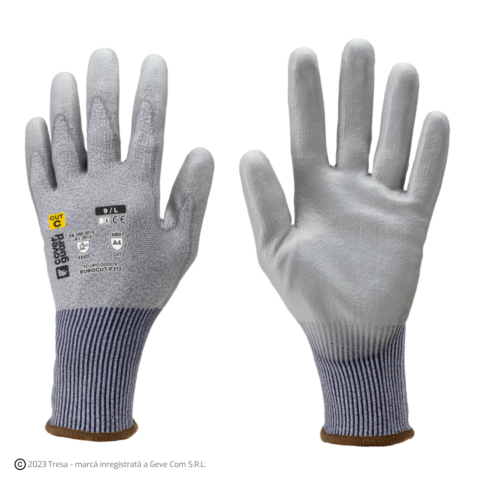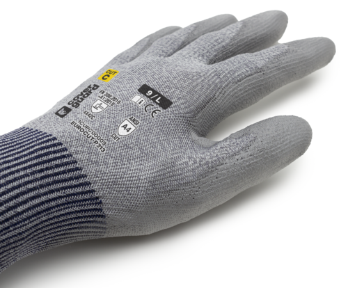 EUROCUT P313, Mănuși de protecție din HDPE, poliamidă și elastan, imersate în PU neted, tricotate calibrul 18