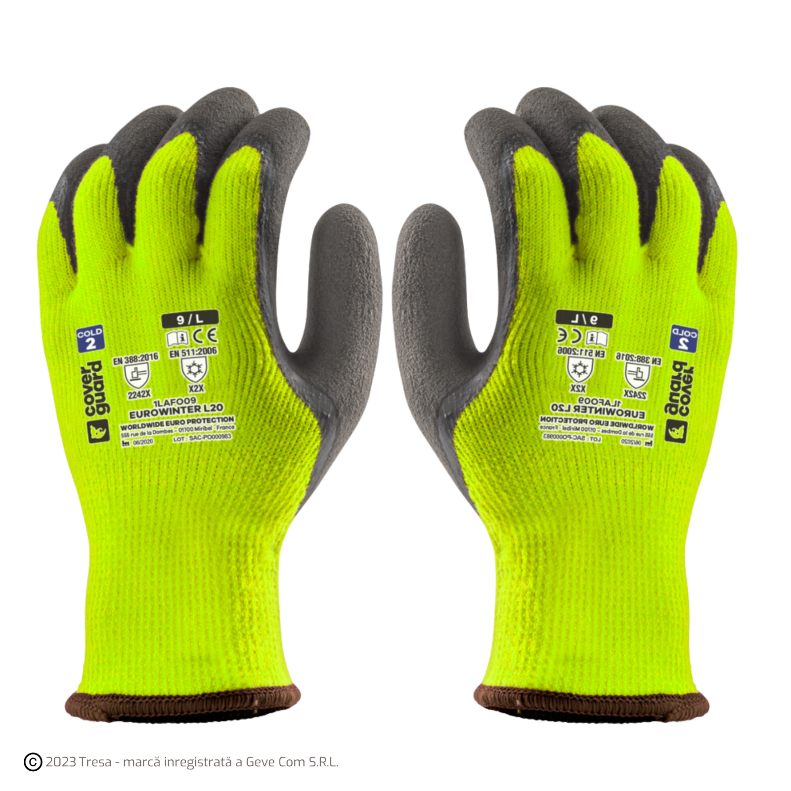 Coverguard EUROWINTER L20, Mănuși de protecție din acril, imersate dublu în latex, lungime 25 cm, grosime 10 gauge