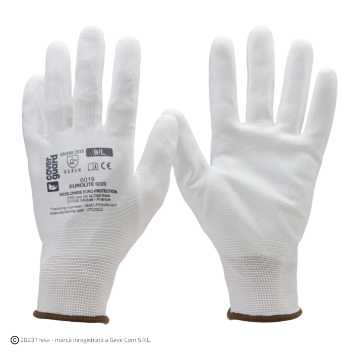 * mănuși de precizie imersate în poliuretan pe palmă * cu manșete elastice, dos ventilat * tricot fin de 13 * gamă completă de mărimi EN 388:2016 3131x EN 1186:2002