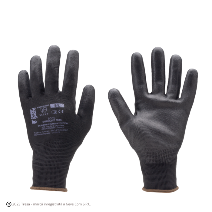 * mănușă de precizie imersată în poliuretan pe palmă cu manșete elastice, dos ventilat * gamă de mare de mărimi * tricot fin de 13 *din 100% poliester. Flexibile, cu rezistență ridicată la rupere EN 388:2016 3131x