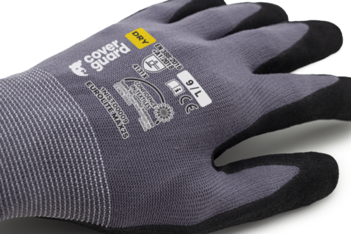 Imersarea în nitril nisipos pe palmă și degete oferă o aderență superioară și o rezistență remarcabilă la abraziune, depășind cu mult cerințele standardului EN388. Mănușile sunt certificate OEKO-TEX® pentru siguranță dermatologică și respirabilitate.