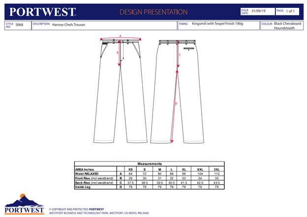 PORTWEST S068 – pantaloni Chef Harrow – reprezintă o alegere modernă și practică pentru profesioniștii din domeniul gastronomiei. Realizați din polibumbac Kingsmill 65% poliester și 35% bumbac cu finisaj Texpel™ Splash Eco, acești pantaloni oferă rezistență la uzură și protecție împotriva petelor, păstrând în același timp un aspect elegant.