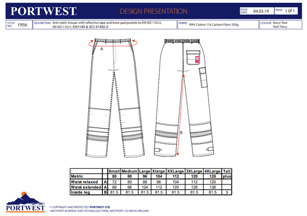 Portwest BIZFLAME - FR56, Pantaloni în talie din bumbac, 350 g/mp