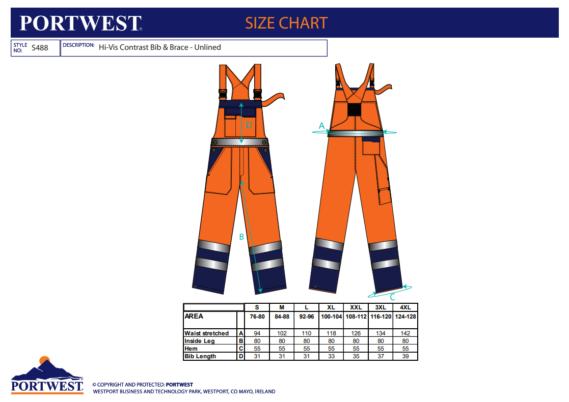 Consultați tabelul de mărimi Portwest pentru alegerea corectă (imaginea de ghid mărimi atașată).