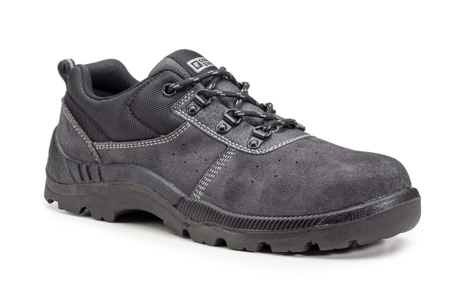 Încălțăminte de protecție cu bombeu metalic și lamelă antiperforație, antistatică, cu rezistență la uleiuri și absorbție de energie în călcâi.