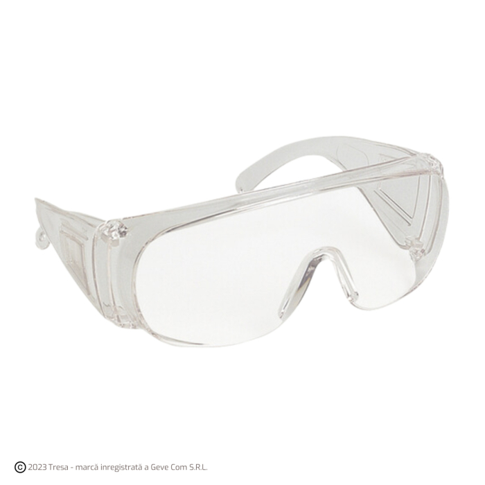 Lentile din policarbonat incolor, protecție UV, rezistente la temperaturi extreme, compatibile cu ochelarii de vedere.