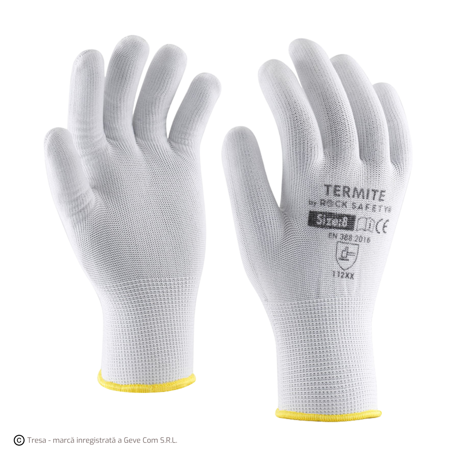 Mănușile de asamblare TERMITE sunt alegerea ideală pentru sarcini de finețe în medii curate. Realizate din poliester tricotat cu ac de dimensiunea 13, aceste mănuși nu sunt imersate, oferind astfel respirabilitate maximă și confort pe termen lung. Designul alb simplu și curat este potrivit pentru aplicații unde igiena este esențială.