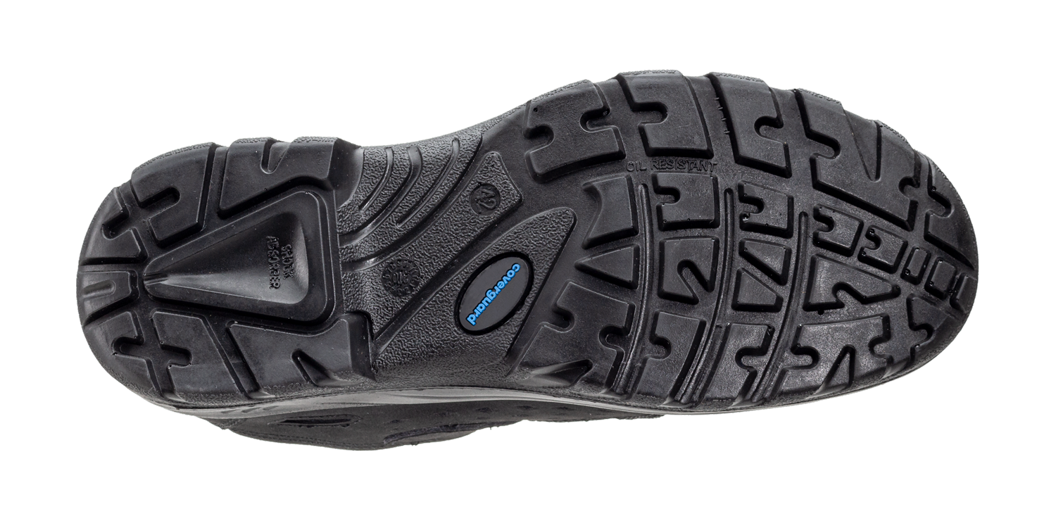 Încălțăminte de lucru O1 – fără bombeu, cu zonă a călcâiului închisă, absorbție energie călcâi (E), proprietăți antistatice (A), rezistență la hidrocarburi (FO).