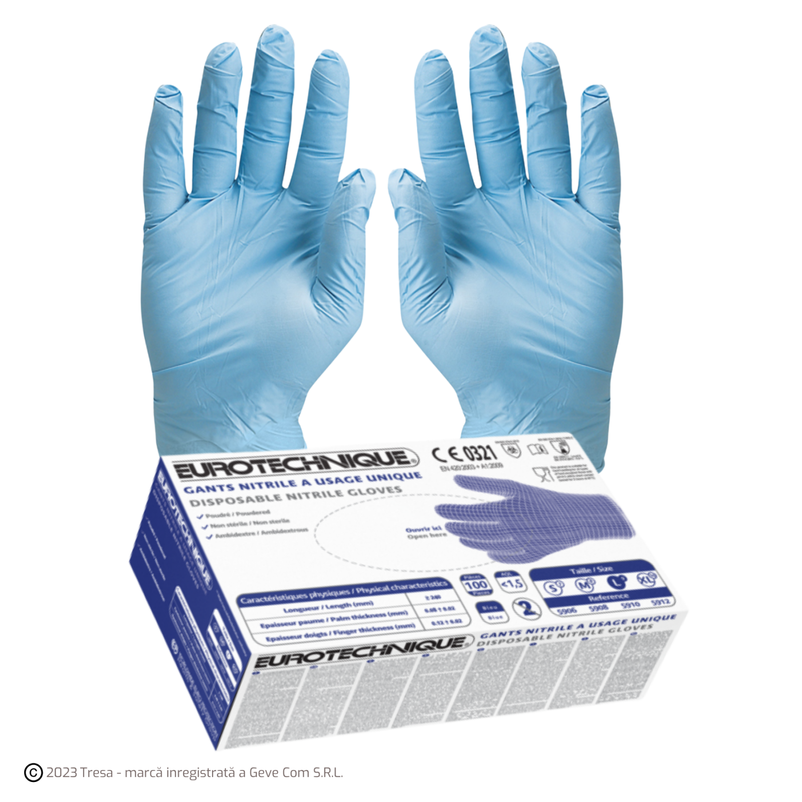 Mănușile EURO-ONE 5910 sunt confecționate din nitril albastru, sunt pudrate și oferă protecție de unică folosință în medii cu umiditate, lichide netoxice sau manipulare alimentară. Au o lungime de 24 cm și o grosime de 0,10 mm, fiind ambalate câte 100 de bucăți. Asigură o dexteritate bună, confort și rezistență mecanică, fiind ideale pentru utilizare în bucătării, laboratoare, îngrijiri medicale nesterile și curățenie profesională.